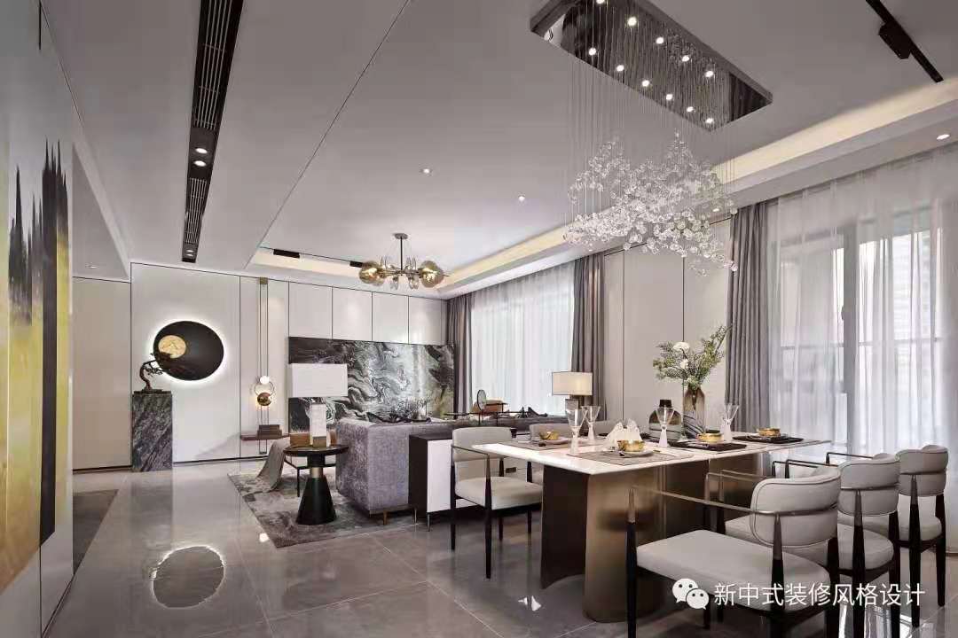 新中式風格裝修:本案例定位為新中式風格,援引東方文化的價值內核,依托當代的設計手法,表現用設計復興人文美學經典的新東方格調。